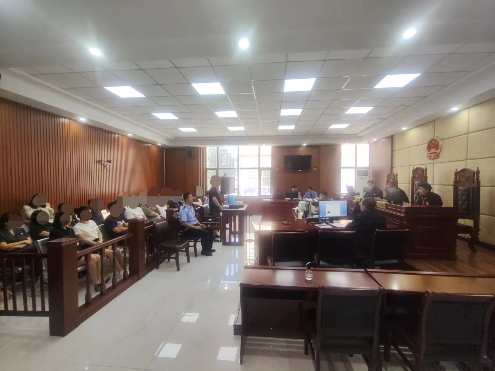 庭审现场,庄严肃穆,秩序井然。环环相扣的庭审程序,清晰再现了被告人如何一步步突破“底线”、越过“红线”,滑向犯罪深渊的全过程。旁听人员直面接受警示教育,受到强烈的震撼和深刻的警醒,真切感受到法律的威严和违法犯罪的惨痛教训。