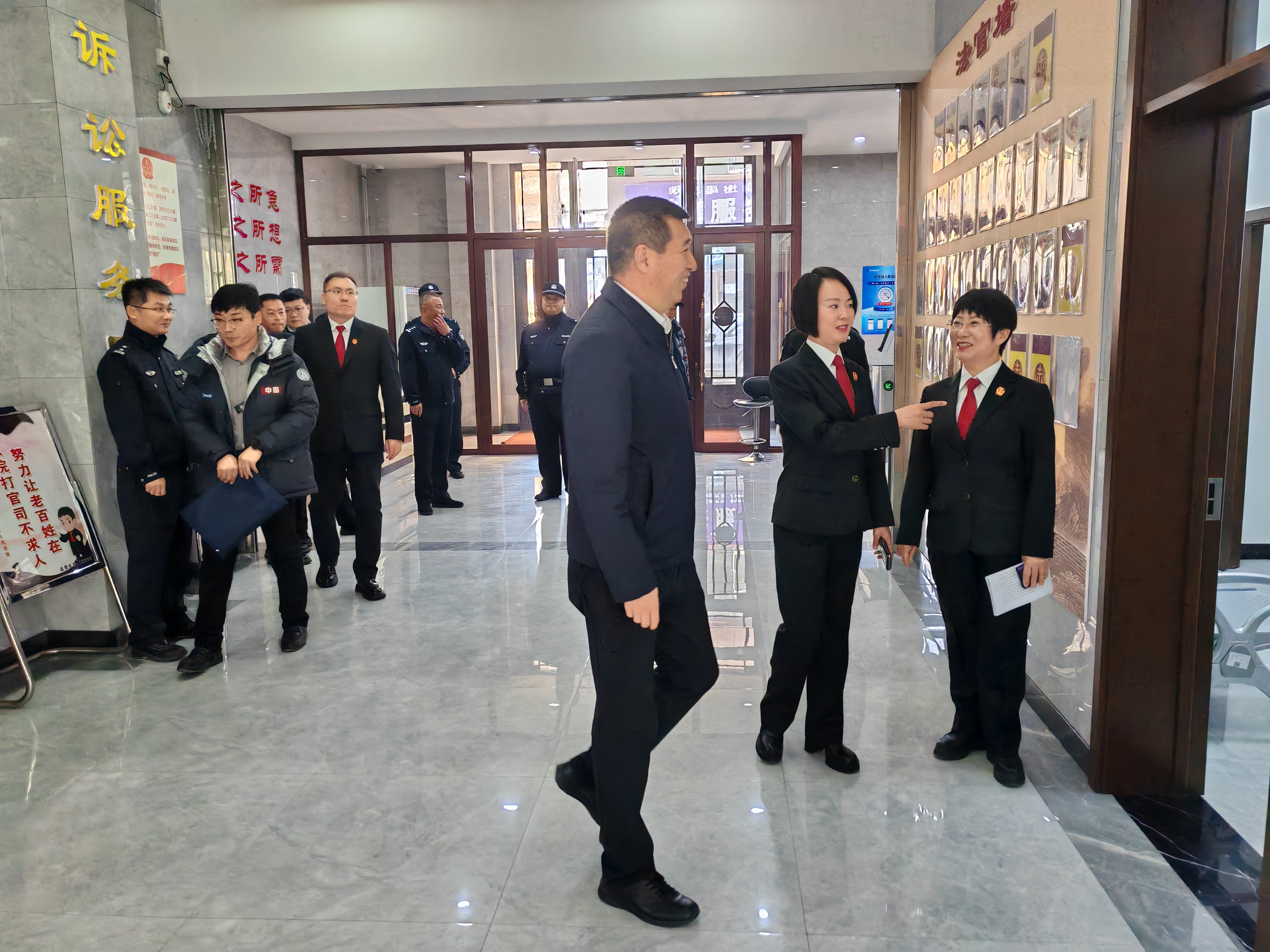 王铁军到庆安法院诉讼服务中心“走流程”并视察相关工作,先后参观了诉调对接中心、“说和人老李”调解工作室、退休法官工作室等区域,对相关工作提出了指导性意见。