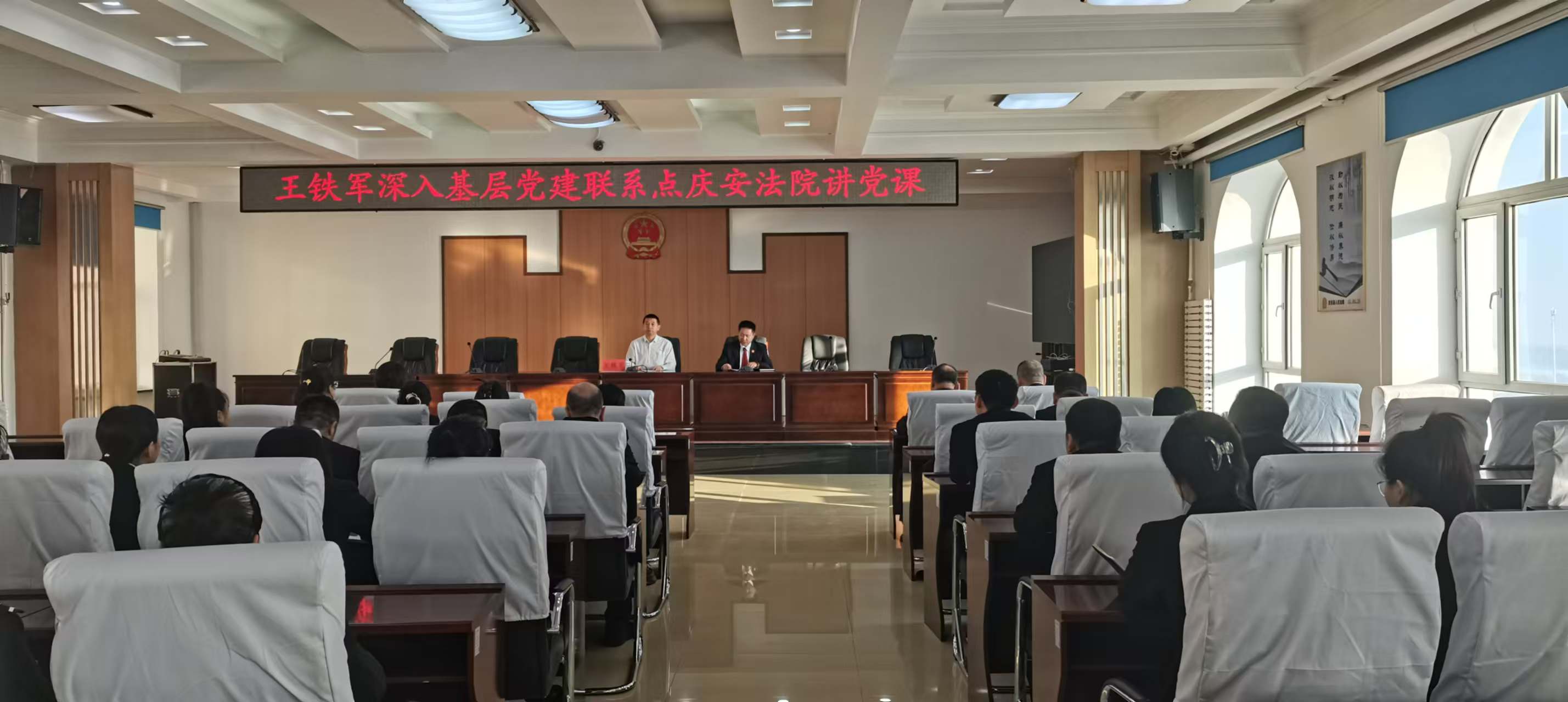 12月20日,为进一步加强基层法院党组织建设,夯实党建基础,充分发挥基层党组织战斗堡垒作用,绥化市中级人民法院党组成员、副院长王铁军到庆安县人民法院开展“六个一”党建联系点工作。