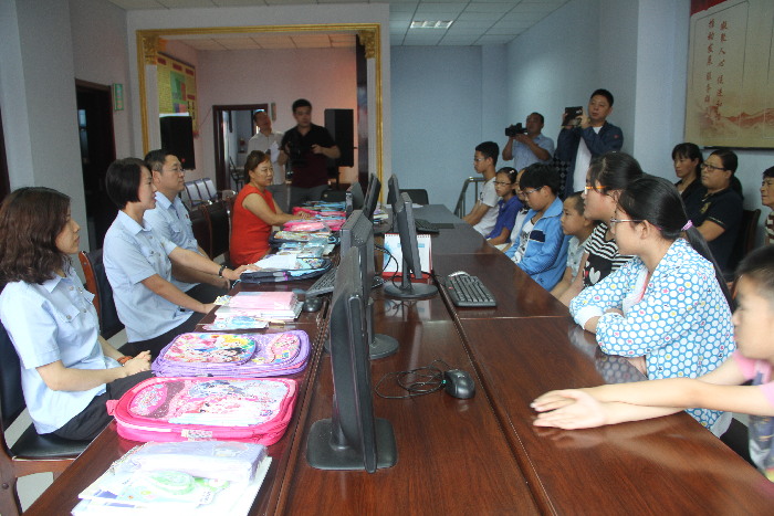 8月21日。在新学期即将来临之际,庆安法院党总支进行了“党员精品日”系列爱心捐助活动,9名院党组成员到庆新社区每人认领了一名微心愿学生,并为他们捐赠了书包、本子等文教用品。