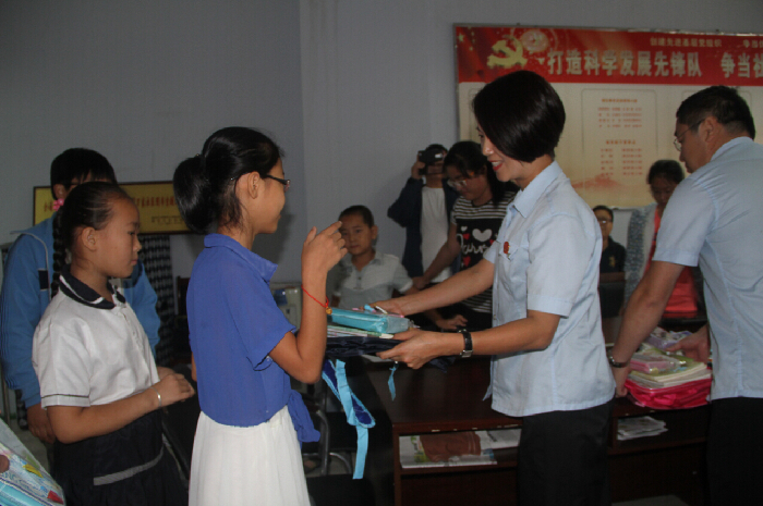 庆安法院党组成员向贫困学生捐赠学习用品