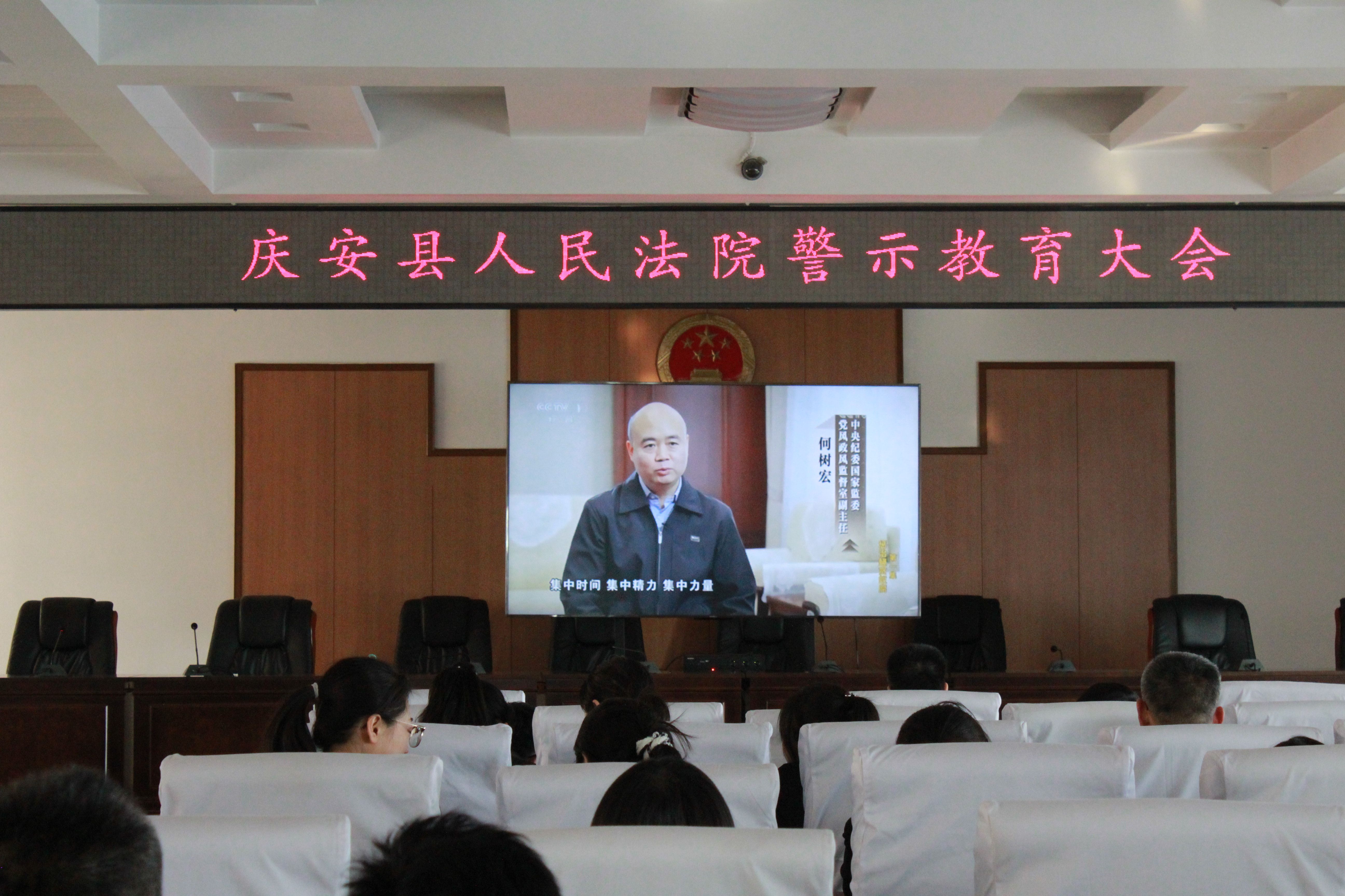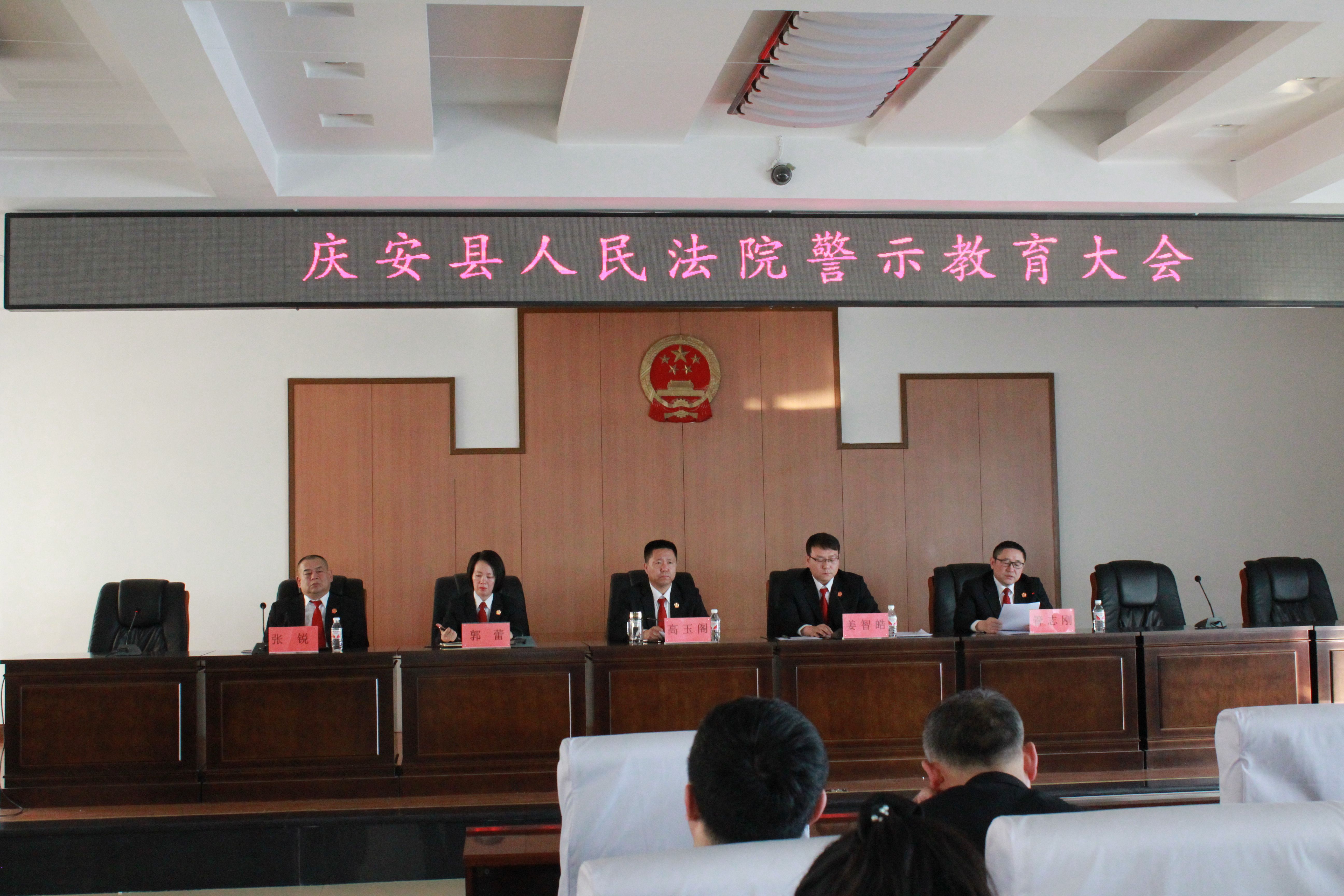 3月5日,庆安县人民法院组织全院干警召开警示教育大会,通过通报典型案例、观看警示教育片,教育干警要以案为鉴,深刻汲取教训,进一步筑牢法院干警知敬畏、存戒惧、守底线的思想防线和讲忠诚、促廉洁的廉政根基,时刻绷紧廉洁自律这根弦,时刻保持清醒头脑,增强拒腐防变意识,自觉抵制各种诱惑和腐败行为,严格遵守党纪国法,自觉接受监督,以实际行动践行公正司法的承诺。