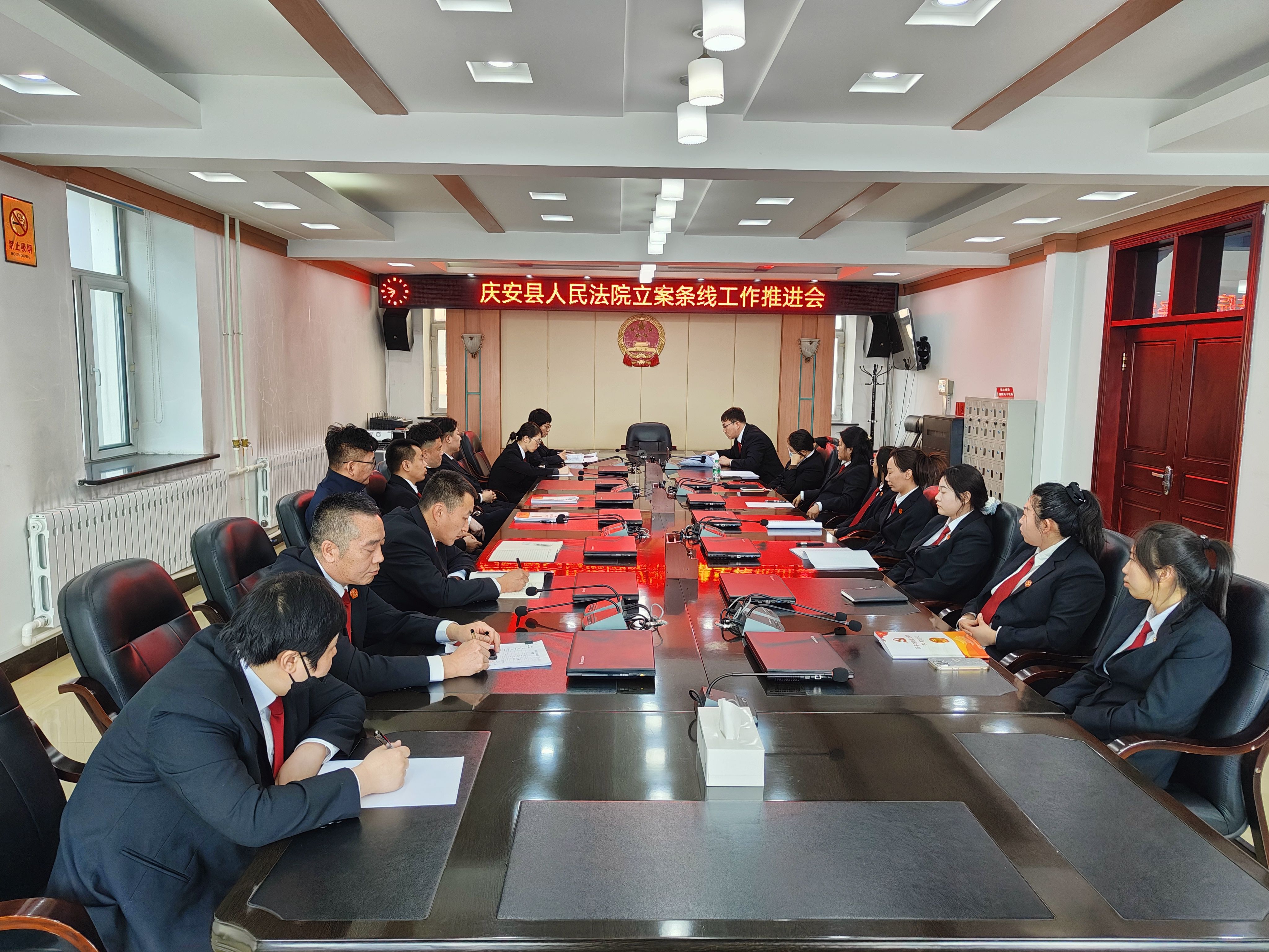 3月6日,庆安县人民法院召开立案工作推进会,贯彻落实庆安县人民法院工作会议、党风廉政建设和反腐败工作会议精神,进一步推进诉讼服务工作高质量发展,全面提升立案诉服工作的标准化、规范化、优质化水平,加强立案与调解工作的规范化、高效化,进一步规范窗口工作人员的服务行为。党组副书记、副院长姜智皓参加会议并讲话,立案庭庭长李婷主持会议,立案庭全体干警参加会议。