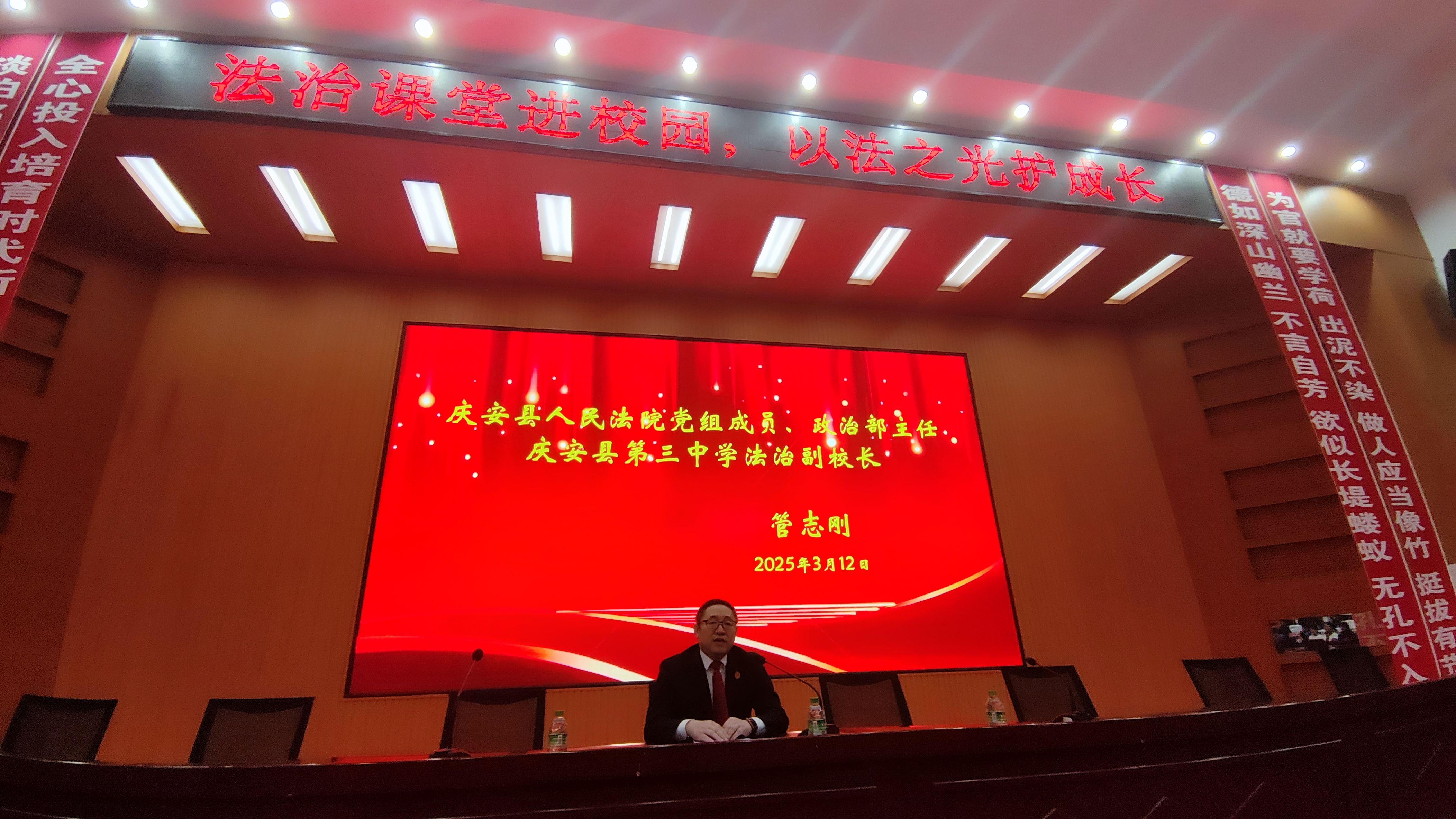 3月12日,庆安县人民法院党组成员、政治部主任管志刚以法治副校长的身份走进庆安县第三中学,为同学们带来了一场别开生面、干货满满的法治课,用法治力量筑牢校园安全防线。