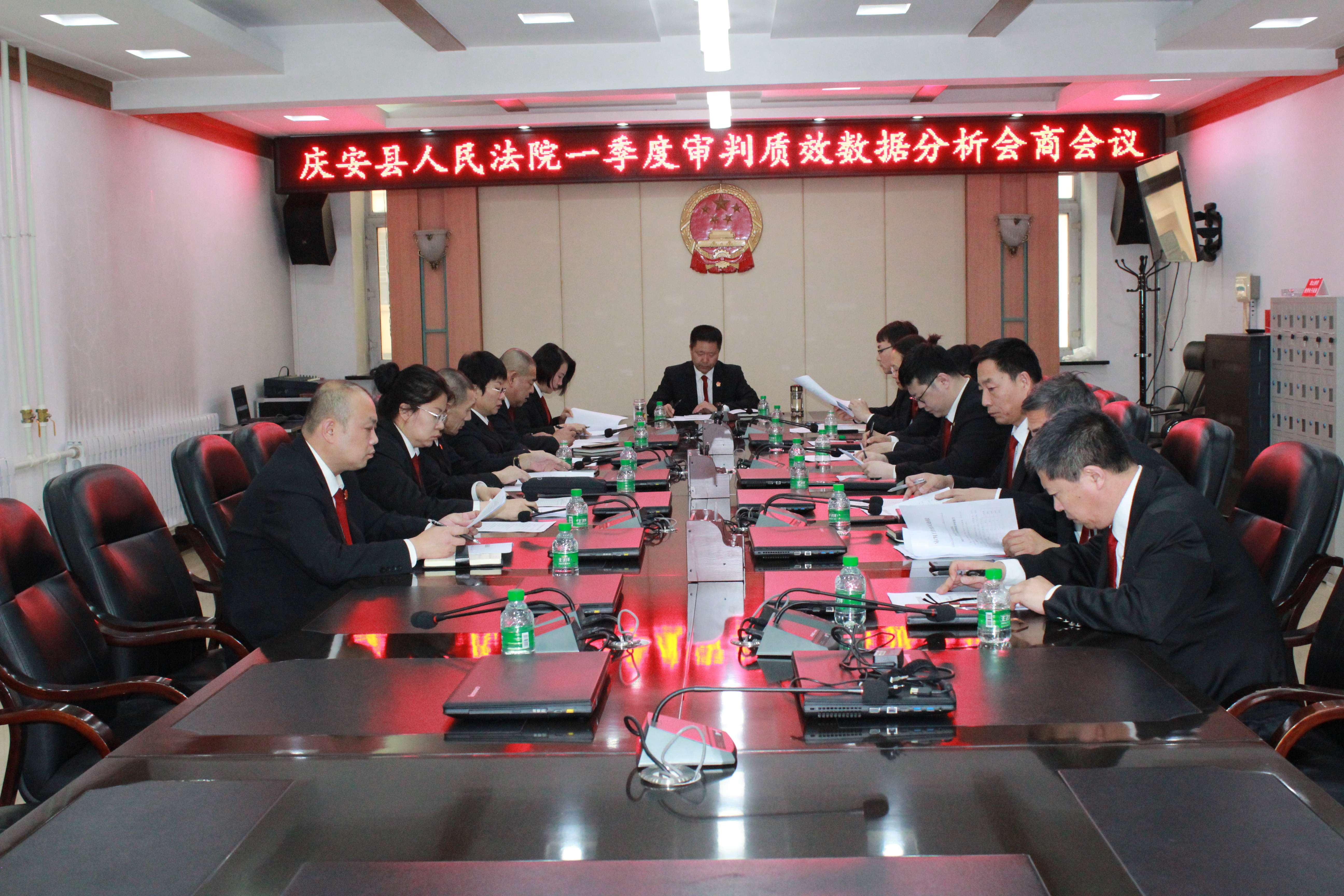 4月11日下午,庆安县人民法院组织召开一季度审判质效数据分析会商会议,贯彻落实绥化中院审判质效督导会议精神,通过数据复盘、交流研讨,全面查摆问题不足,精准定位整改方向,努力提升审判质效。党组书记、院长高玉阁主持会议,党组成员、各审执业务部门负责人参加会议。
