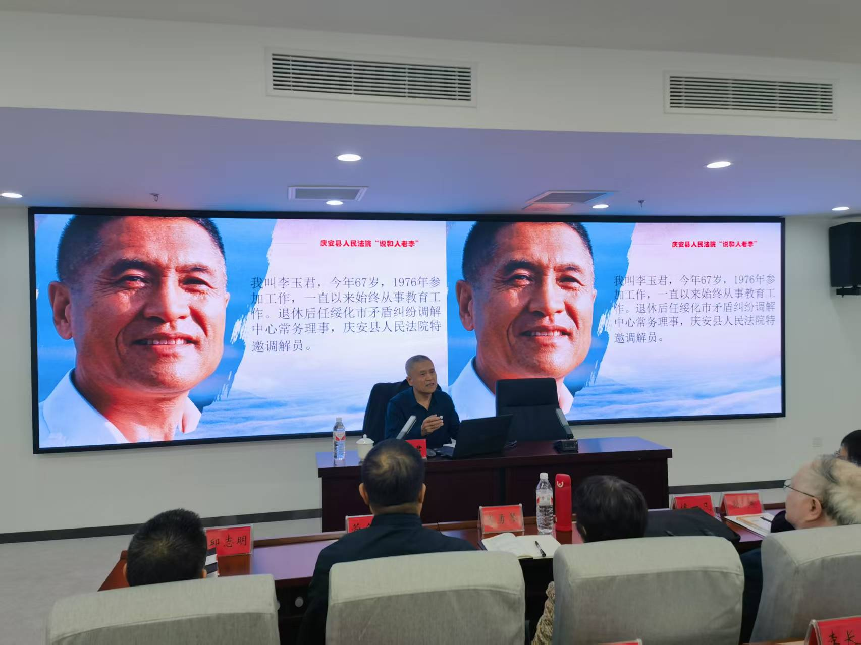 4月20日,省委老干部局、省司法厅在省老干部活动中心联合举办全省离退休干部“银龄调解员”培训班,庆安县人民法院“说和人老李”调解工作室“全国模范调解员”“全国离退休老干部先进个人”李玉君同志受省委老干部局、省司法厅邀请在本次培训班作“退休不褪色 余热映初心”专题培训,与来自市(地)和省直单位共71名“银龄调解员”一起探讨交流人民调解工作经验。
