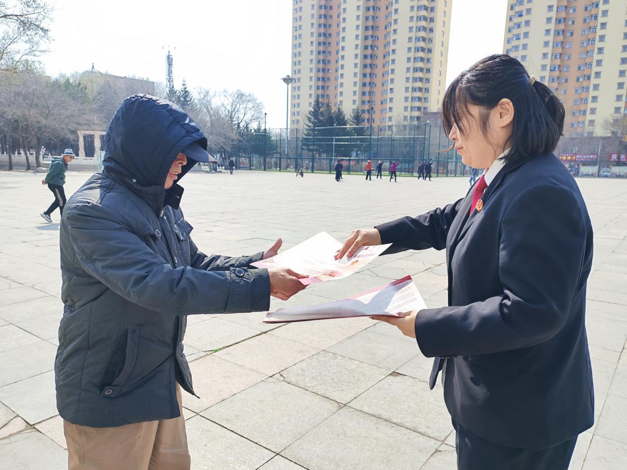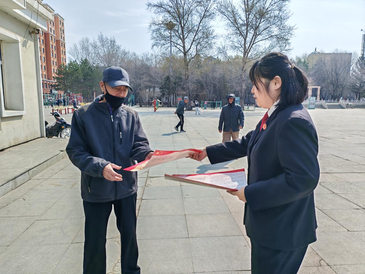 4月30日,庆安县人民法院干警来到人民广场开展《反有组织犯罪法》宣传活动。