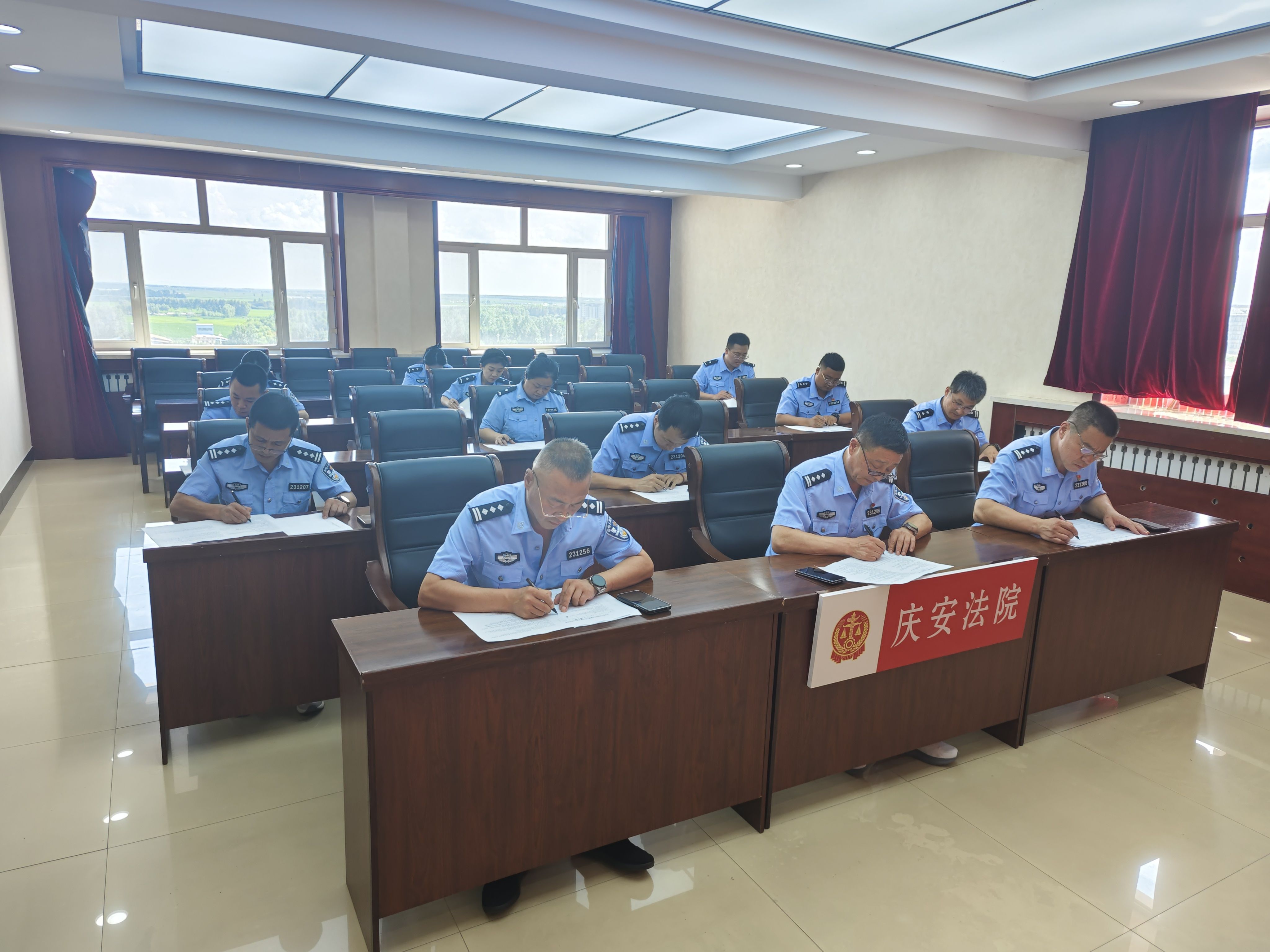为检验学习成效,大队同步组织理论考试,内容涵盖司惩、安检、警械具等核心知识点,以考促记、以考查漏,进一步巩固学习成果,引导法警将理论知识转化为实际执法能力。