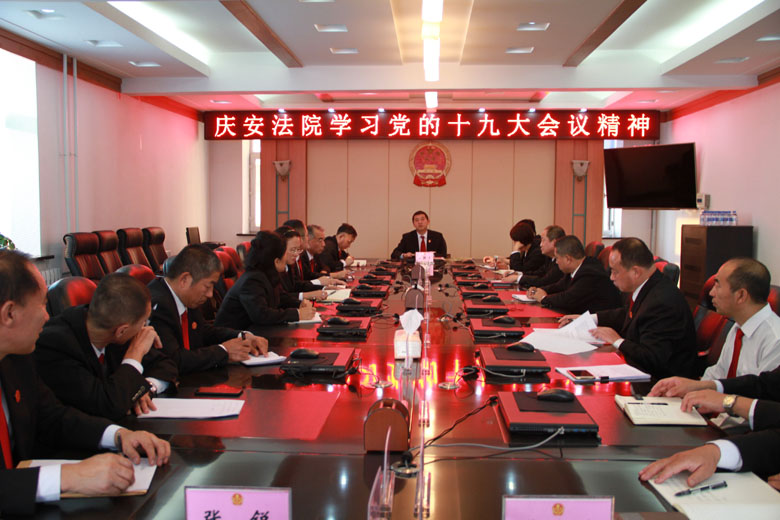 10月30日下午,庆安县人民法院召开党组扩大会议认真学习贯彻党的十九大精神,将其作为当前压倒一切的政治任务抓紧抓好,引导干警将十九大精神学深、学透,让十九大精神成为指导审判工作的指针。各部门负责人列席会议。