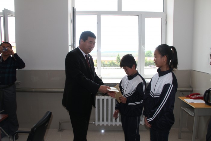 院党组书记、院长王铁军亲自到新胜中学将1000元救助金送到两名特困学生手中,鼓励他们要好好学习,将来要报效祖国回报社会,并承诺将会一如既往地坚持对他们资助下去,直至大学毕业为止。党组成员,副院长郭蕾到欢胜小学为两名特困生送去救助资金1000元。