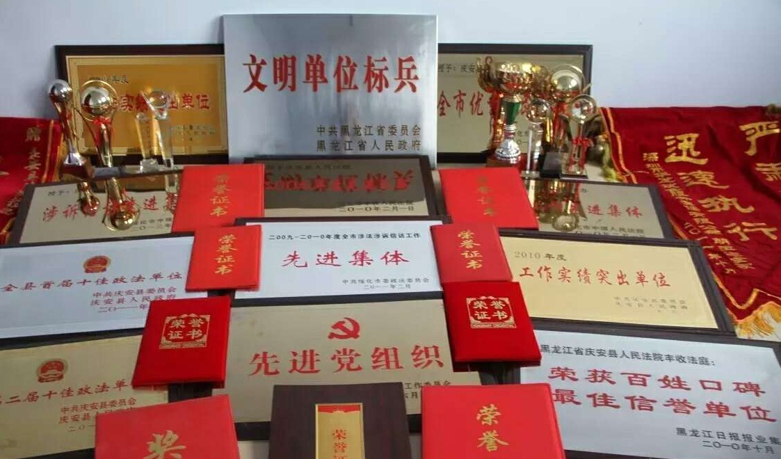 几年来,庆安法院先后被县委评为工作实绩突出单位、十佳政法单位、先进党组织,被市中级人民法院评为全市先进法院、全市先进集体、全市涉诉信访先进集体,被省法院荣记集体二等功一次,曾连续2次被评为“全省精神文明建设标兵单位”,半数以上的部门和近2/3的个人荣获过上级法院授予的先进集体、优秀法官、办案能手、调解能手等荣誉,是绿色稻米之乡的护法者、守护神 ,更是人民群众信赖的司法人......