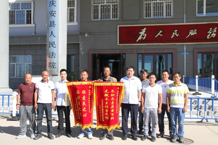 8月26日,庆安县新胜乡新泉村村民代表满怀深情地将两面锦旗送至庆安县人民法院,以表达对人民法官的由衷敬意和无限感激。