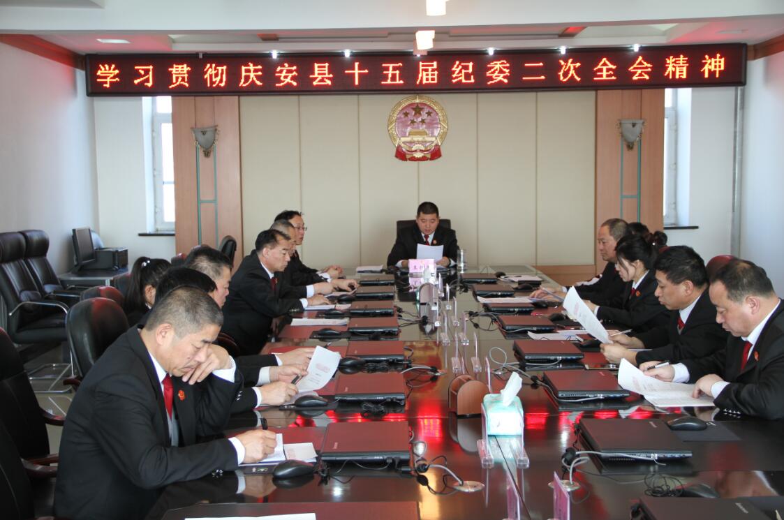 2月21日,庆安县人民法院召开党组扩大会议,认真学习贯彻全省法院院长会议精神和县纪委十五届二次全会精神,特别是省高院石时态院长的重要讲话,结合庆安法院实际对会议精神作出了具体部署。各部门负责人列席会议。