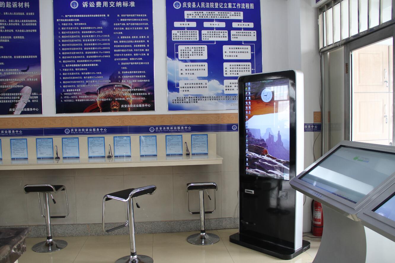 创新服务方式,提供诉讼平台。对原有立案大厅进行扩建,设置了办事区、查询区、书写区、等候区、自助区,为当事人提供诉讼咨询、立案登记、信访接待、法官约见、判后答疑、听证审查等服务;配齐了现代化办公设备,增设了叫号机、电子触摸屏、电子查询屏、12368诉讼服务热线等。此外,还提供各类法律文书样式、报刊杂志、饮水机、老花镜、针线包、急救药箱等备用物品,极大地方便了群众诉讼,受到群众好评。