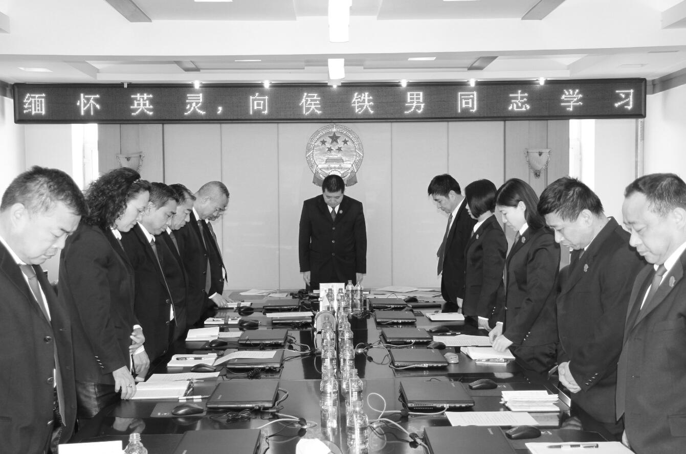 侯铁男同志因公殉职噩耗传来,庆安法院全体干警无不震惊悲痛。缅怀英模先进事迹,全院干警决心化悲痛为力量,用侯铁男同志“坚守正义,敢于担当”的精神鼓励鞭策自己,全力破解执行难。