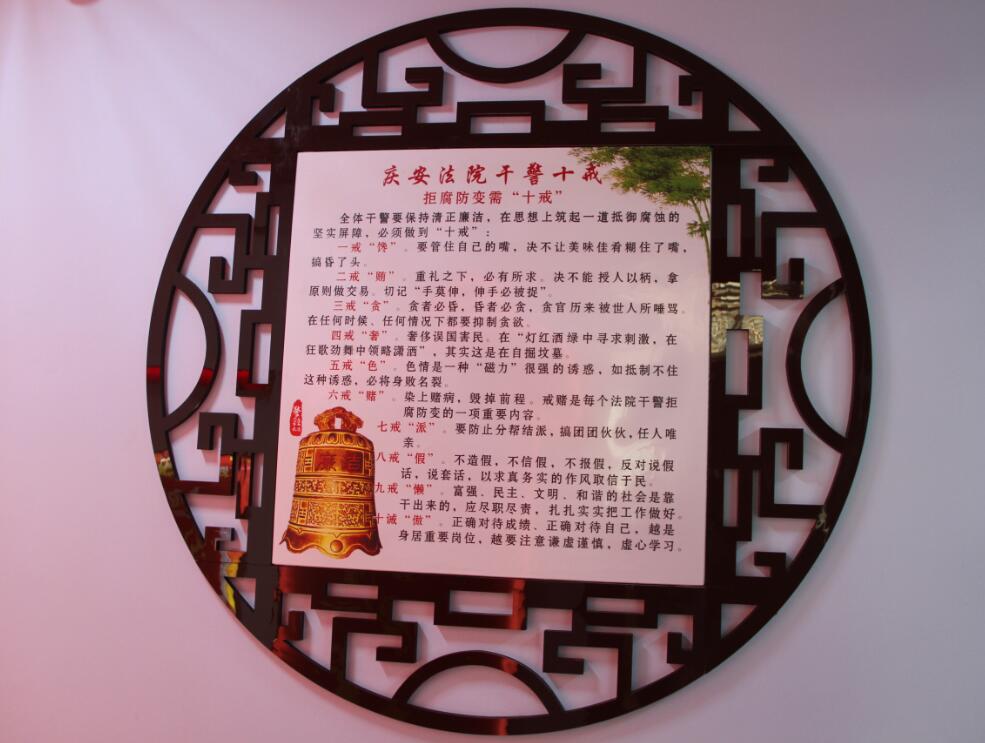 廉政文化长廊宛如阵阵清廉之风在庆安法院尽吹,熏陶着干警的思想,净化着干警的心灵,增强了干警拒腐防变的能力,也展现出庆安法院在开展廉政建设中措施得力,形式多样,内容丰富,为打造“五硬”法官队伍提供了坚实基础。