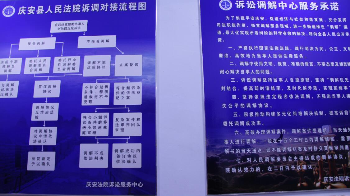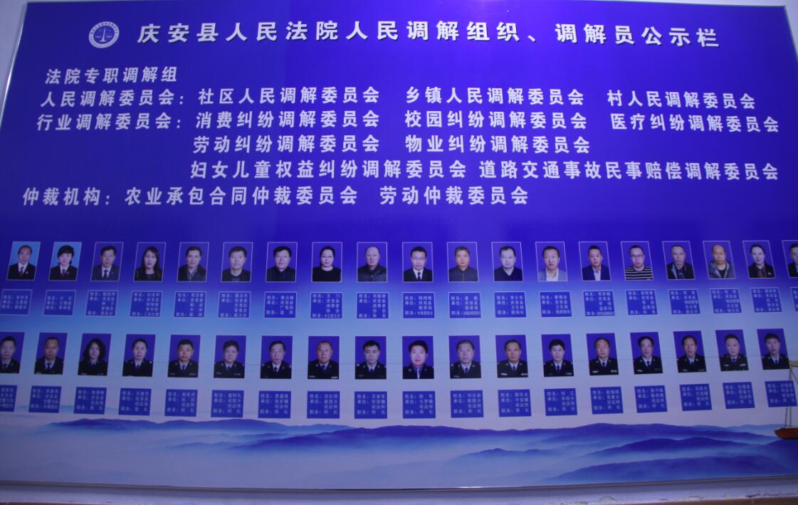庆安法院在司法体制改革中,不断探索创新诉调对接工作,建立健全覆盖城乡的调解组织机构,成立了“庆安县人民法院诉调对接中心”,引入社区、乡镇和村级人民调解委员会,消协、物业、医疗、交通等行业调解委员会,劳动仲裁和合同仲裁机构。在诉讼服务中心设立调解工作室,聘请了34名人民调解员,由诉讼服务中心统一调配纠纷解决的社会资源,对口分流,调处纠纷、化解矛盾。相比法官,这些基层调解组织的调解员更加贴近群众、熟悉基层,在人民群众中有着朴素的传统威信。庆安法院诉调对接服务的创新工作为群众提供了多元、便捷、高效的纠纷解决途径,确保了解决纠纷的渠道更多、效率更高、效果更好,受到群众好评。