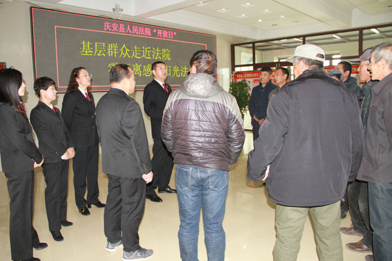 在党的十九大召开前夕,10月9日,国庆节后第一个工作日,庆安县人民法院举办了一次别开生面的“法民鱼水一家亲”开放日活动,院党组邀请全县14个乡镇的农民代表到县法院“做客”,零距离亲身感受阳光司法。