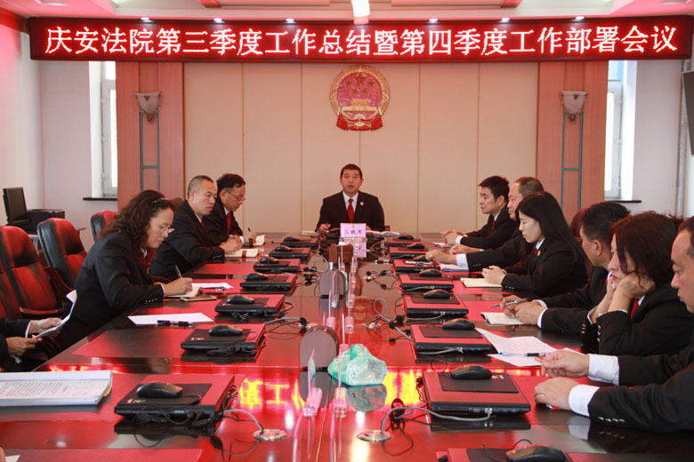 10月10日下午,庆安县人民法院召开了第三季度工作总结暨第四季度工作部署会议,党组成员和各部门负责人参加了会议。