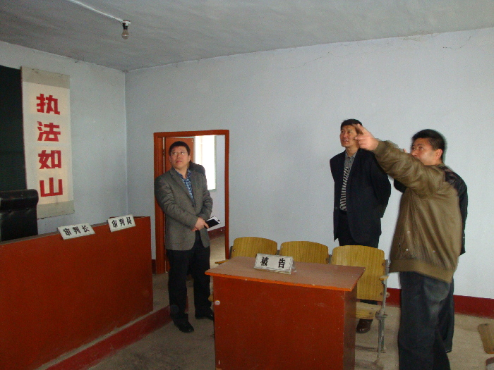 他先后视察了丰收法庭和大罗镇法庭,对法庭的基础设施建设、信息化建设、安全保障、收结案件、人员编制、年龄结构、职级、福利等情况进行了调研。最后,李东院长强调指出,法庭要进一步加强规范化管理,注重法院文化,注意树立形象;加强法庭安全保障工作,提高法官安全意识;提倡没有基层经验的年轻法官到法庭锻炼,稳步提高法庭法官政治、福利待遇;要充分发挥人民陪审员的作用;要做好诉前调解案件的登记工作,防止案件流失。