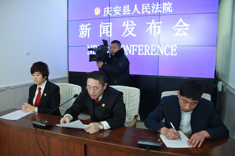 新闻发布会由法院党组成员、政工科长、新闻发言人管志刚主持。庆安县委政法委维稳办副主任、庆安县诉调对接中心办公室负责人吕红春和庆安法院立案庭法官、庆安法院诉调对接办公室负责人计红回答了记者的提问。