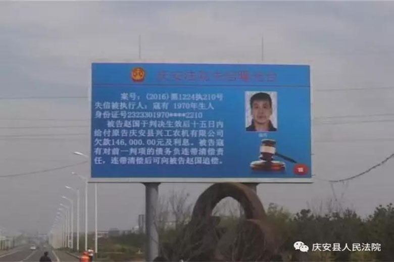 庆安县人民法院为进一步加大执行力度,推动社会信用机制建设,最大限度保护当事人的合法权益,继续加大公布失信被执行人名单的力度,做到该上名单的一个不落,确保发布率百分之百;该采取措施的一个也不放过,绝不手软。“岁末攻坚”执行活动开展以来,先后对符合条件的“老赖”纳入失信被执行人名单25人,限制其高消费及非生活或者经营必需的有关消费,对案件的执结起到了良好的效果。