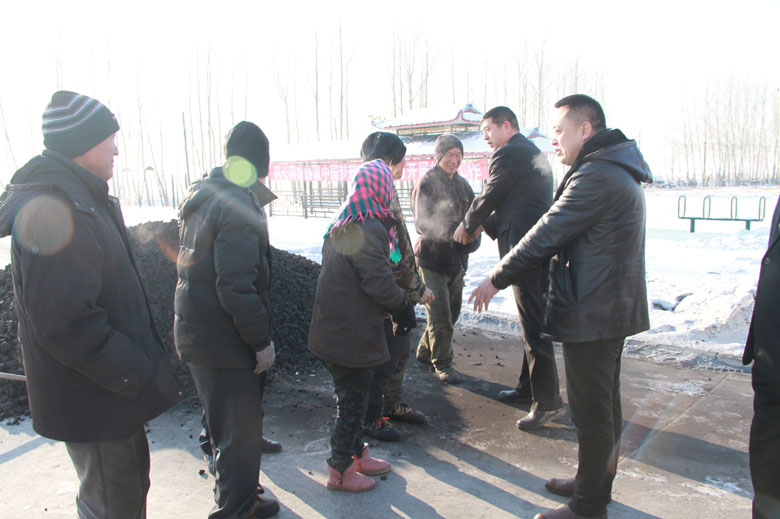 在发展乡发祥村,为每个贫困户送去一吨煤和过冬棉衣物,并送到定点帮扶贫困户的手中。