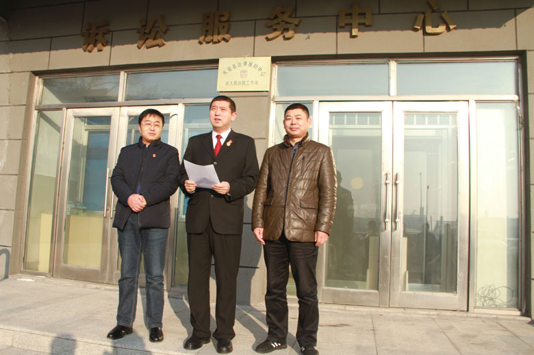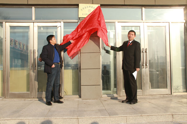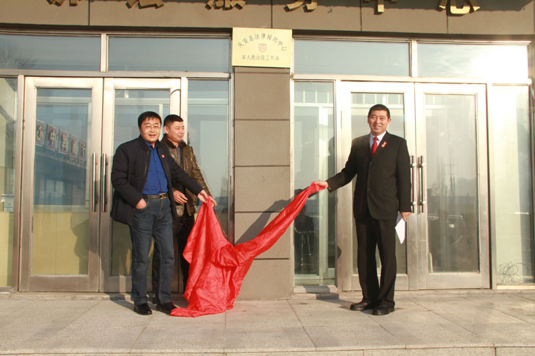 12月26日上午9:30分,庆安法院举行庆安法律援助中心驻人民法院工作站挂牌仪式,庆安法院党组书记、院长王铁军与政法委常务副书记王庆双、司法局副局长郝良武共同完成揭牌。