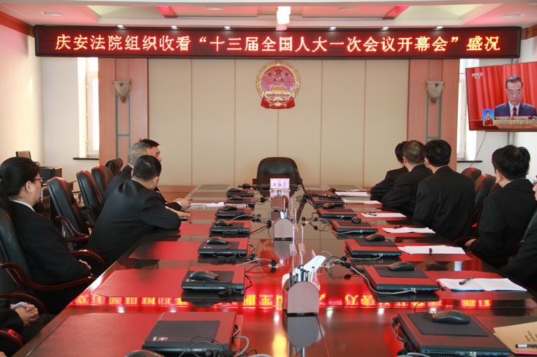 庆安法院组织收看 “十三届全国人大一次会议开幕会”盛况