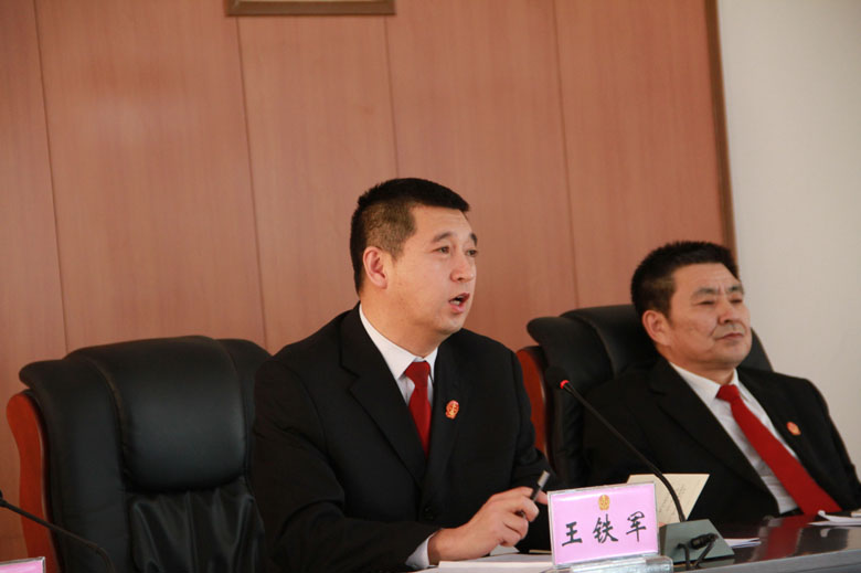 党组书记、院长王铁军对2018年工作进行了强调、提出了要求:要努力把全体干警的思想统一到全市法院工作总体部署上来,扎实做好2018年审判工作;坚持以党的十九大精神和习近平新时代中国特色社会主义思想为指引,坚定不移地坚持党的领导,紧紧围绕县委中心工作和改革发展稳定的大局,充分发挥职能作用,规范审判执行行为,进一步增强抓好案件质量的紧迫感和责任感;狠抓作风建设,不忘初心,牢记使命,忠诚履职,力保队伍纯洁性和战斗力;全力维护社会公平正义,牢固树立服务意识,结合法院工作实际,创新服务方式,深化司法为民工作,让人民群众享受到更多更好的司法服务;继续抓好党风廉政建设,发挥党员干警的凝聚和带动作用,夯实廉政力量,弘扬司法正气,营造风清气正的良好环境。