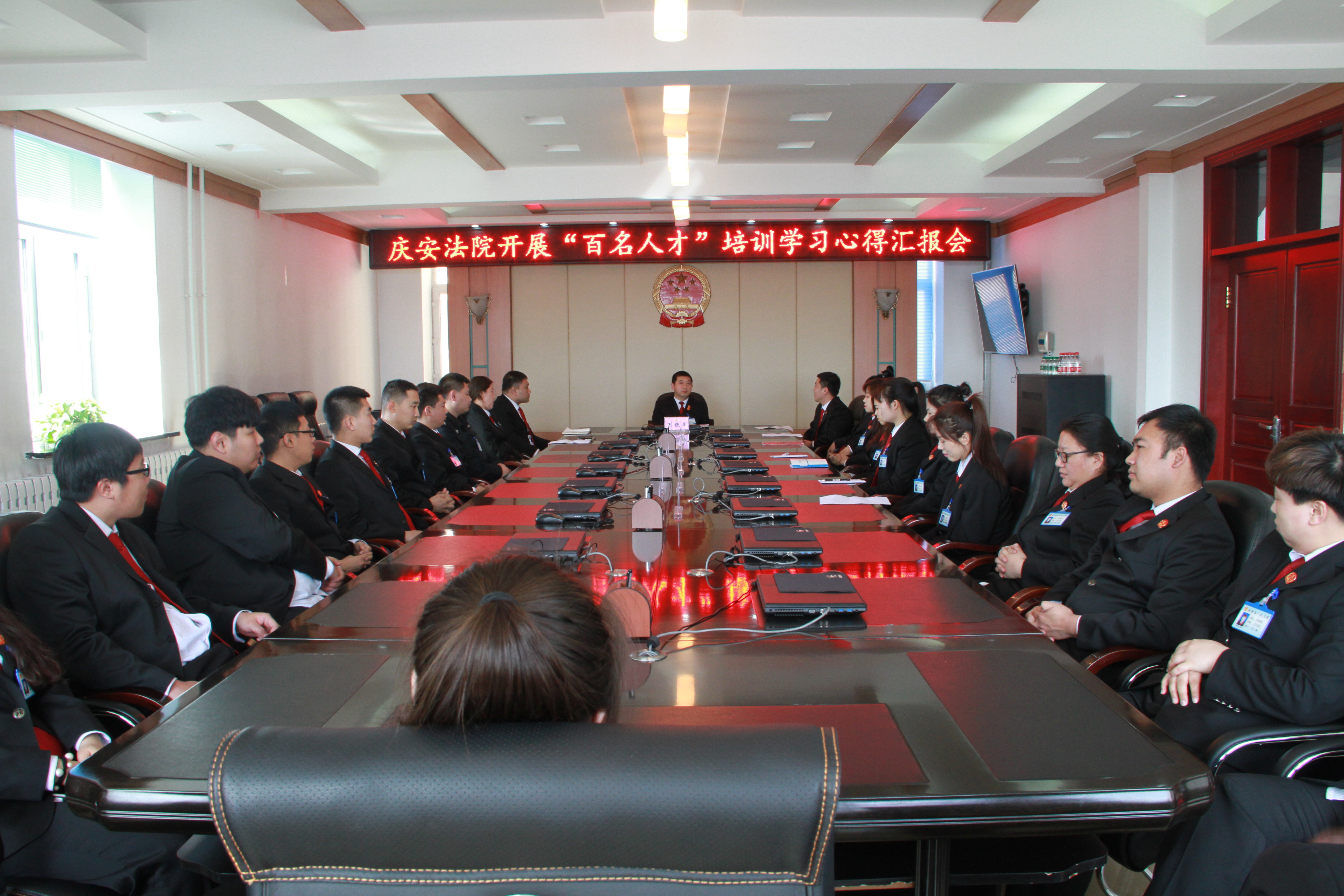 为进一步加强干警队伍建设,努力提升干警队伍整体水平,4月25日,庆安法院召开汇报会,参加绥化市中级法院“百名人才”培训的五名学员分别汇报了心得体会并交流了经验。