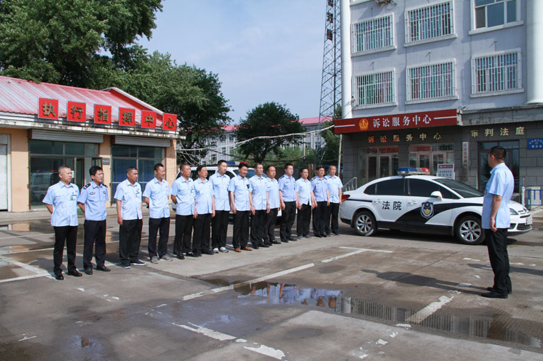 党组书记、院长王铁军给全体参战干警做战前动员,希望全体干警团结协作,规范执法行为,注意个人安全,通过“雷霆行动”,切实树立司法权威,向党和人民交上一份满意的答卷。