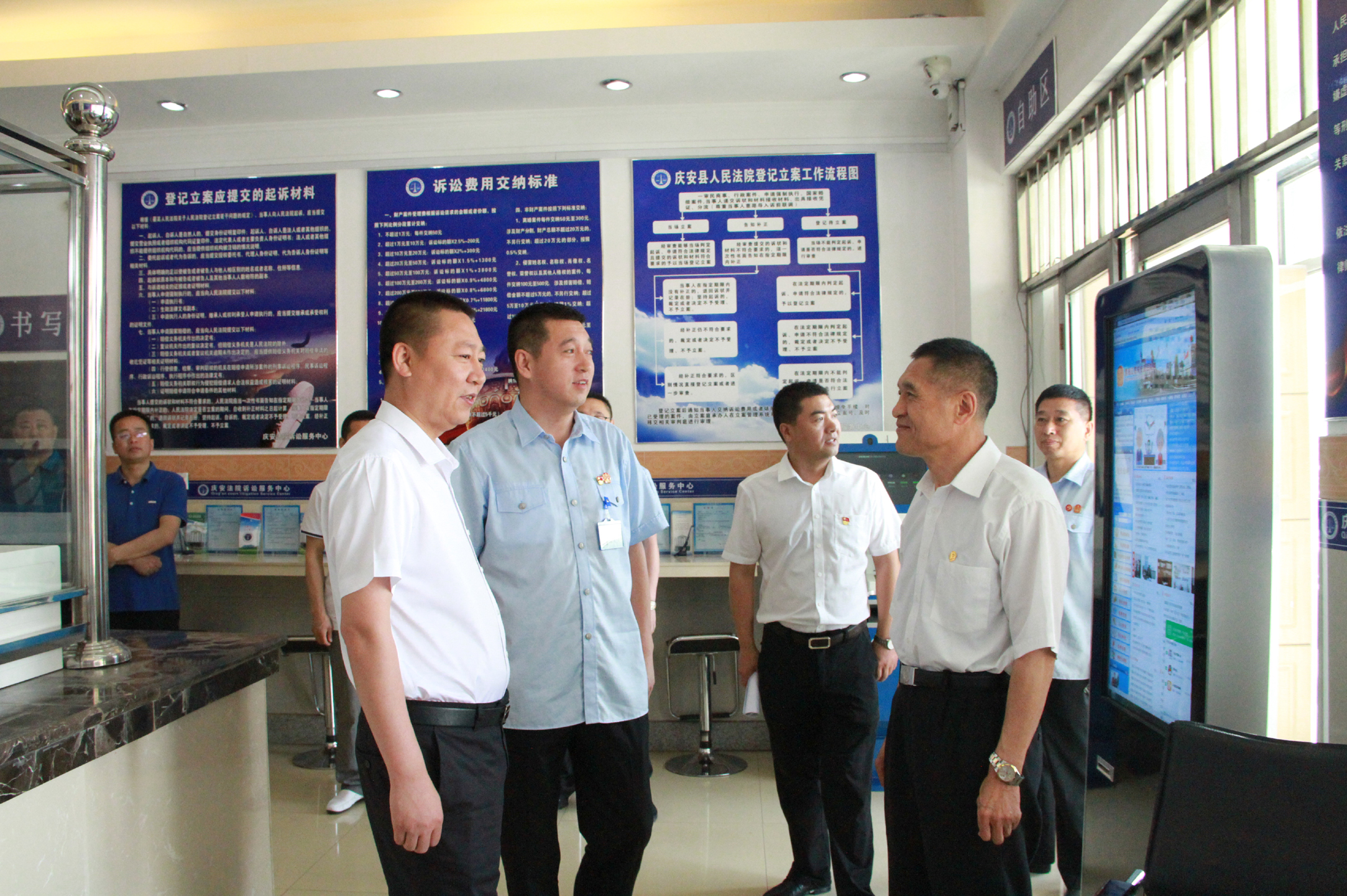 与会者在法院讲解员的引导下,参观了“廉政文化长廊”、诉讼服务中心“一站式窗口”、执行指挥中心、科技法庭、党建综合活动室等场所,并认真观看了网上阅卷、网上查控被执行人信息,饶有兴致地试用了案件查询一体机、网上预约立案体验等便民服务设施。代表们切身体会了庆安法院司法便民利民、阳光公开,对法院党组织抓载体打造特色党建品牌、多渠道开通便民司法举措、运用“互联网+”为民提供便捷服务大为称赞。