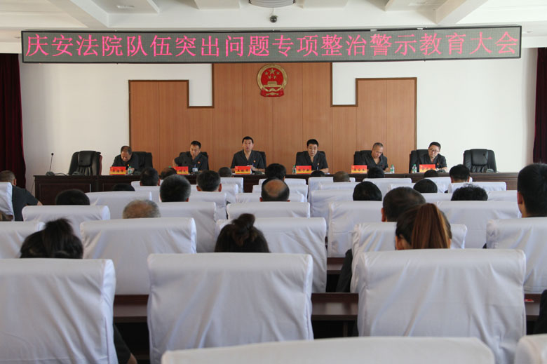 为了贯彻落实全市法院队伍突出问题专项整治警示教育大会精神,重点整治干警队伍中存在的三个大方面76个突出问题, 努力提高司法服务保障质量和水平,9月10日,庆安法院组织全体干警召开了队伍突出问题专项整治警示教育大会。会上宣读了《庆安县人民法院队伍突出问题专项整治警示教育活动方案》,对专项整治工作进行了具体安排部署。