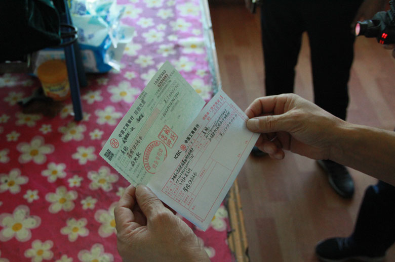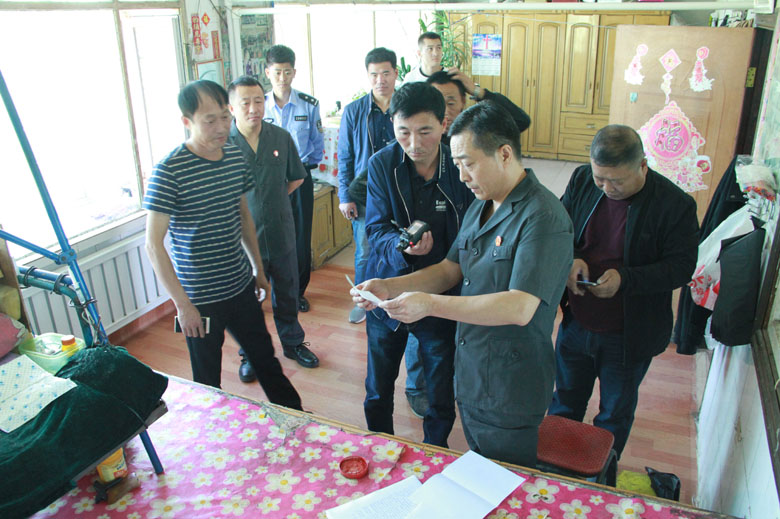 9月17日,庆安法院执行局干警来到丰收乡丰华村曲某家中,将15万元司法救助款交到曲某手中,曲某感动得热泪盈眶。