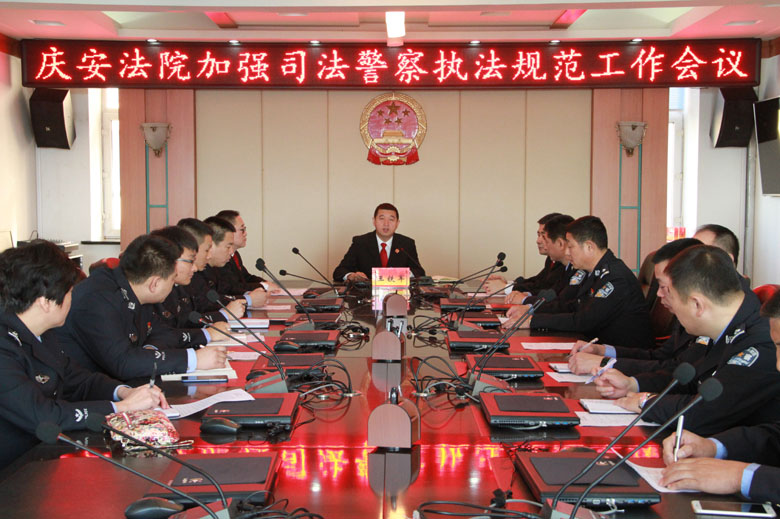 为加强司法警察执法规范化建设,10月10日,庆安法院召开了司法警察规范执法工作会议,党组书记、院长王铁军主持会议,党组成员、法警队全体干警参加了会议。
