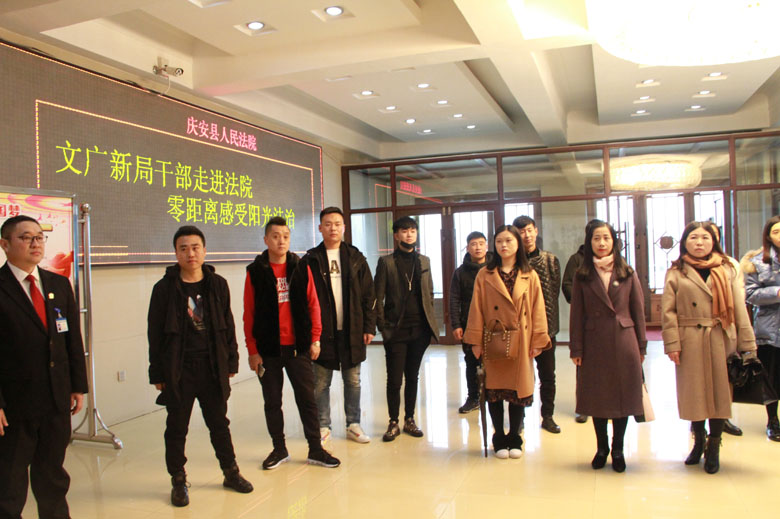 为进一步提升司法公信力和审判工作透明度,促进司法公开,11月9日,庆安法院举行第31次“公众开放日”活动,邀请文广新局干部代表参观法院,感受阳光法治。