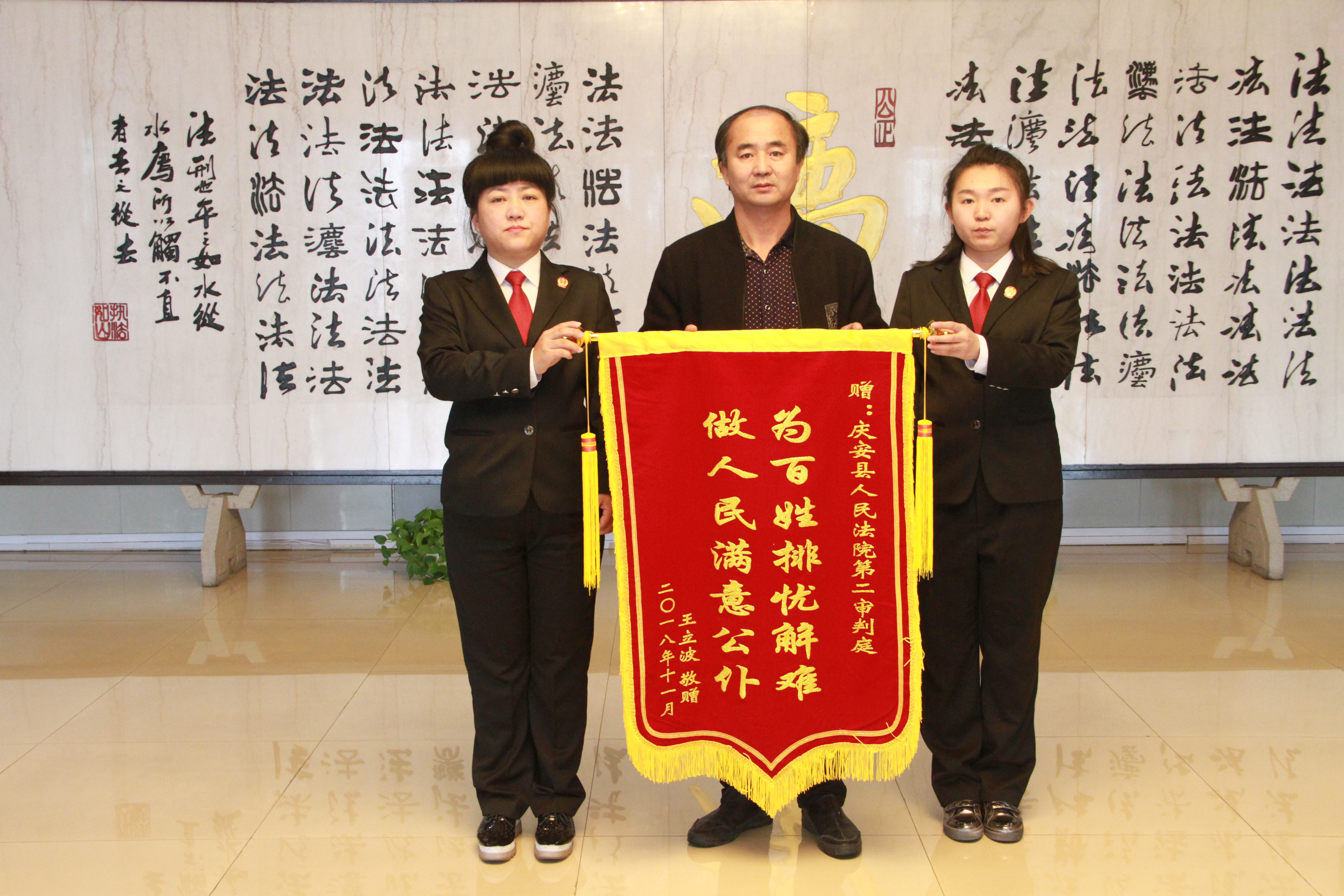 11月21日一大早,王先生就来到庆安法院,把一面绣有“为百姓排忧解难、做人民满意公仆”的锦旗,送到法官李慧颖的手上,发自肺腑地说:“谢谢你李法官,我五十多岁了,头一次打官司,没想到遇到了你这么好的法官,案件处理得这么好、这么快,为我解决了闹心事,真是太谢谢你了!”