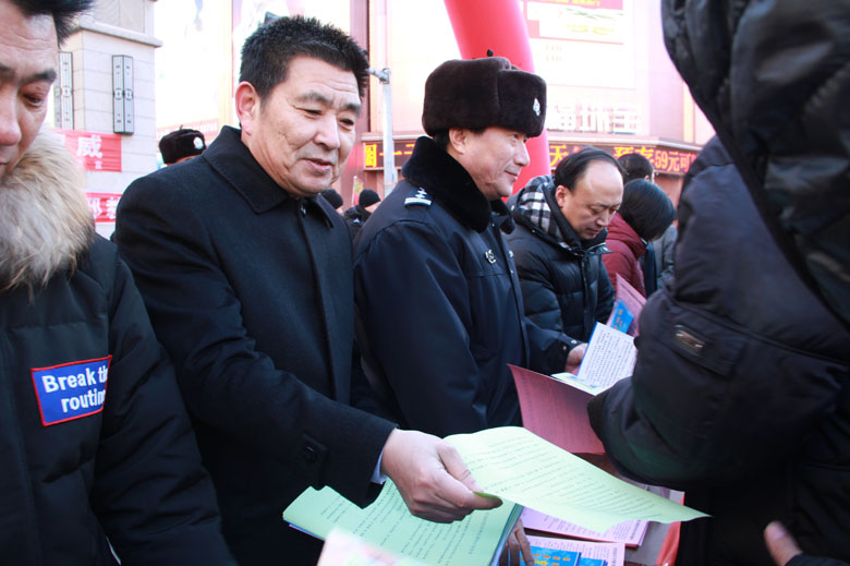 4日上午,法院党组成员带领干警们在商业街繁华地带搭建了宣传台、悬挂宣传条幅,向过往群众发放法律宣传材料400余份,现场解答群众咨询的各类法律问题30余人次,受到群众的欢迎。