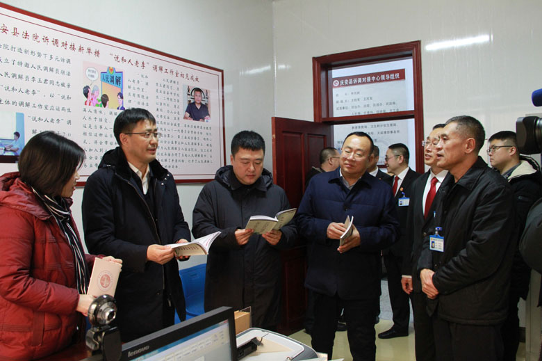 庞洪峰对庆安法院积极探索诉调对接工作新模式,并取得了成效给予高度评价,鼓励庆安法院要继续创新开展诉调对接工作,真正为人民群众排忧解难。