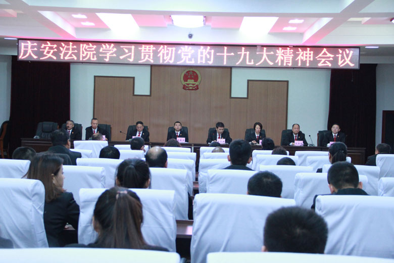庆安法院党组深入研究周密部署,用“学在深处、谋在新处、干在实处”的实际行动,把学习党的十九大精神热潮引向深入。11月13日下午,该院召开全院干警会议,部署推进学习贯彻党的十九大精神。