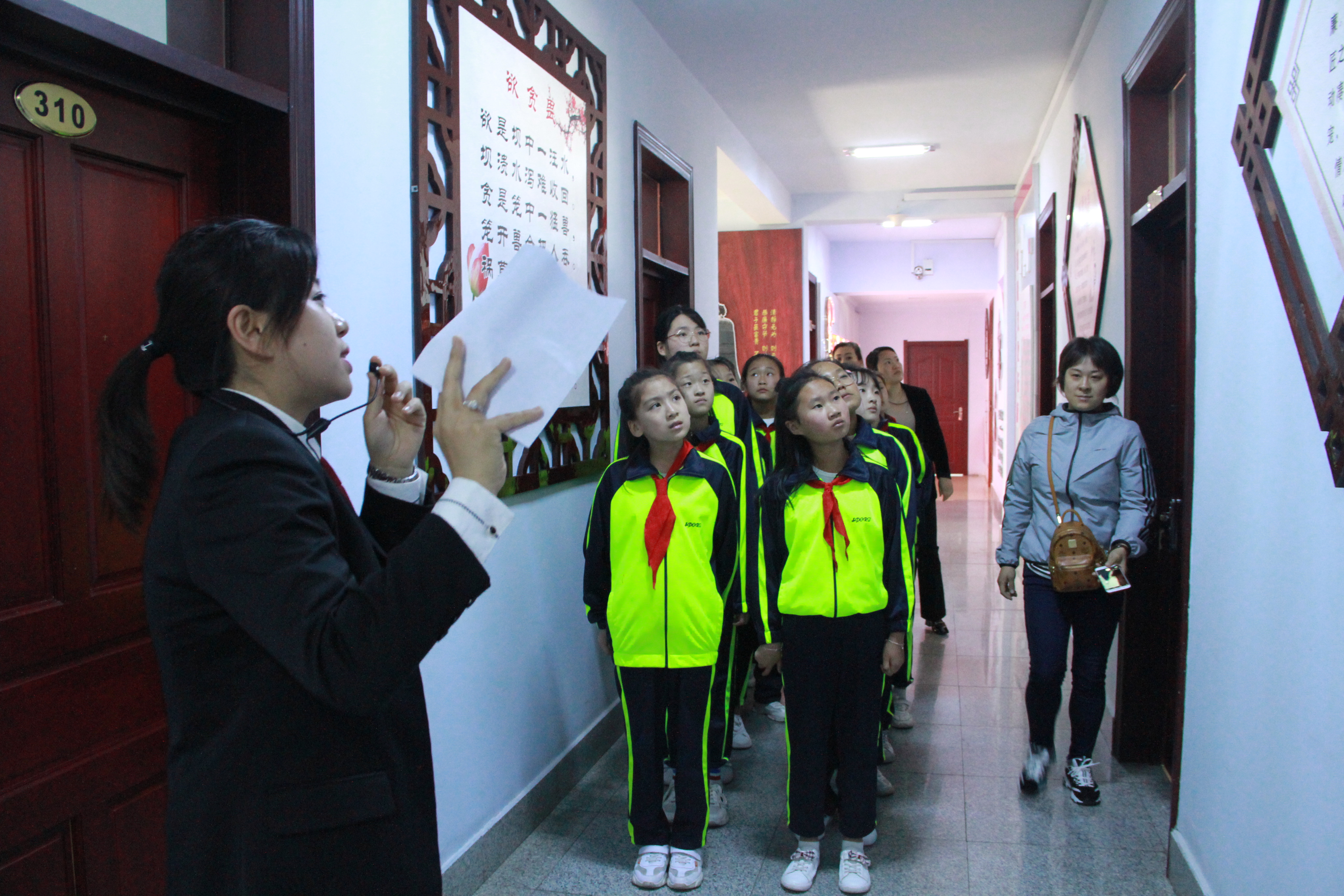 在廉政文化长廊里,倾听着解说员讲解的廉政小故事,孩子们幼小的心灵被浓浓的法院廉政气息所熏染着;在荣誉室,同学们看到法官叔叔阿姨们获得的荣誉,感受着法院的光荣历程;在羁押室,看着铁窗栅栏,孩子们加深了对法律的敬畏;在党建活动中心,同学们通过参观党的光辉历程图片,感悟着前辈们的革命情怀,净化了灵魂……