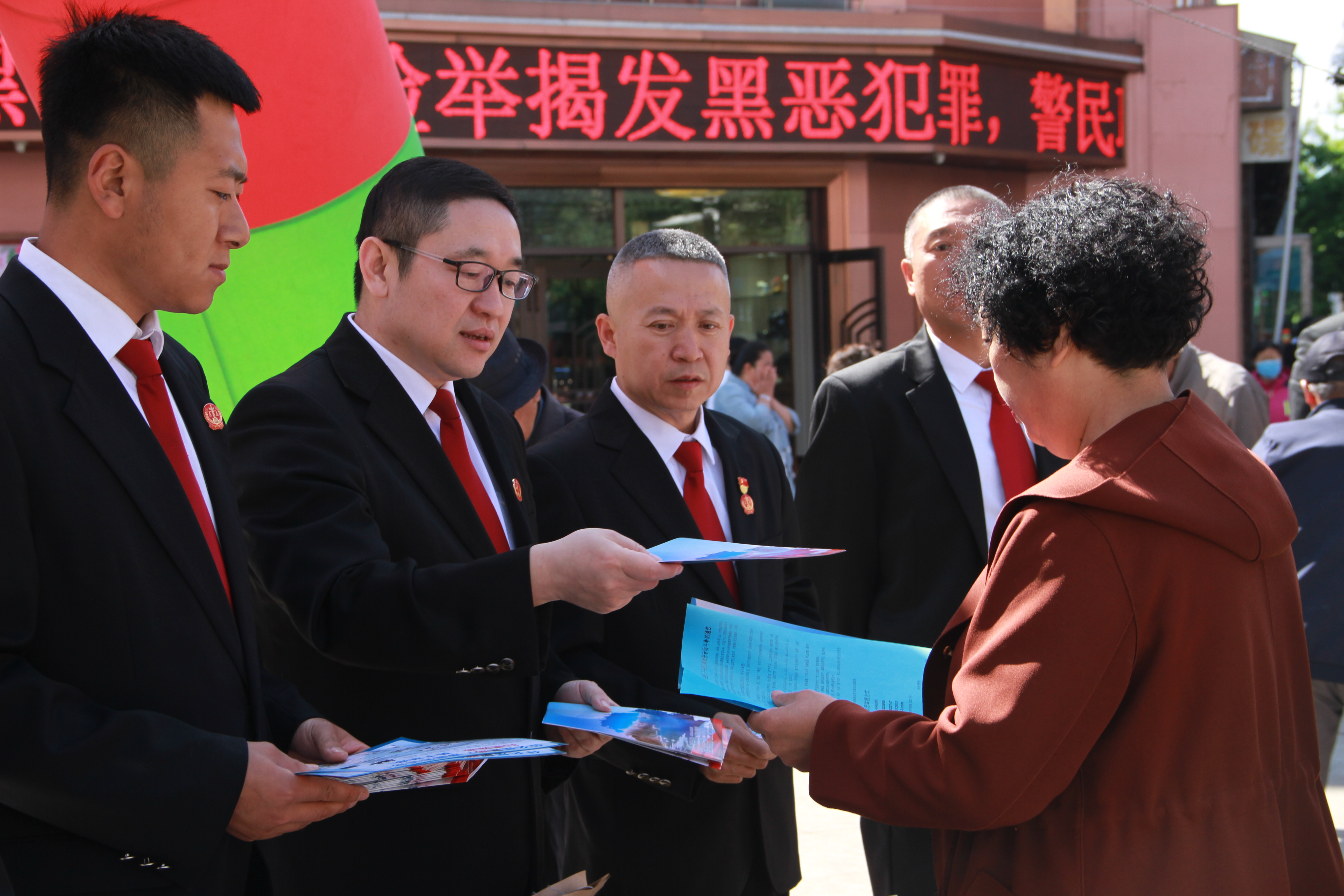 为了认真贯彻落实党中央国务院关于开展扫黑除恶专项斗争要求和上级法院、省市县委扫黑除恶专项斗争会议精神,进一步宣传打击黑恶势力扫黑除恶专项斗争的坚定决心,努力营造全党动员、全民知晓、全员参与的扫黑除恶氛围,增强人民群众的获得感,幸福感和安全感,5月31日庆安县人民法院组织20多名干警在商业街商业繁华区域开展了扫黑除恶专项斗争大型宣传活动,与人民群众“零距离”“面对面”的宣传交流,黑龙江经济报、绥化晚报媒体同步参与了宣传报道。